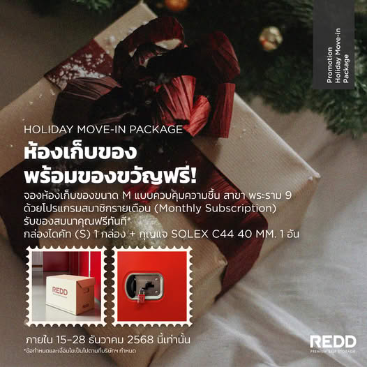 - Your complimentary gift can be collected at the Front Desk of REDD Premium Self Storage, Rama 9 branch, on your check-in date, any day between 09:00 and 20:00.